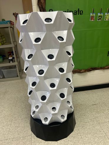 When the hydroponic garden arrived to my classroom, the students were so excited to see me unpack it. They really had no idea what it was going to look like or how it would be put together. I demonstrated to all my classes how I had to fit each piece together by snapping in the tabs. When all the circular pieces were assembled, the comments the kids said were, "It looks like a spaceship". And, honestly, it really does. I only installed the tower halfway so the kids could see what was inside and the first comments were, "How is the water going to get all the way up to the top of the tower." That's when I pulled out the pump and demonstrated to them that the pump was going to bring the water to the top of the circular pipe. I pulled the pipe out and showed them how the water dripped.